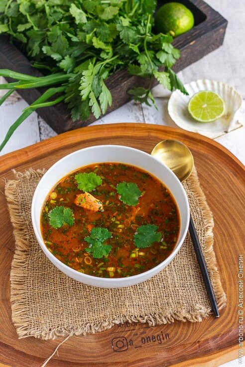 Завершающий штрих — подача супа с посыпкой свежими веточками кинзы и зеленого лука. Блюдо не только зарядит энергией, но и подарит яркие впечатления от каждого глотка.