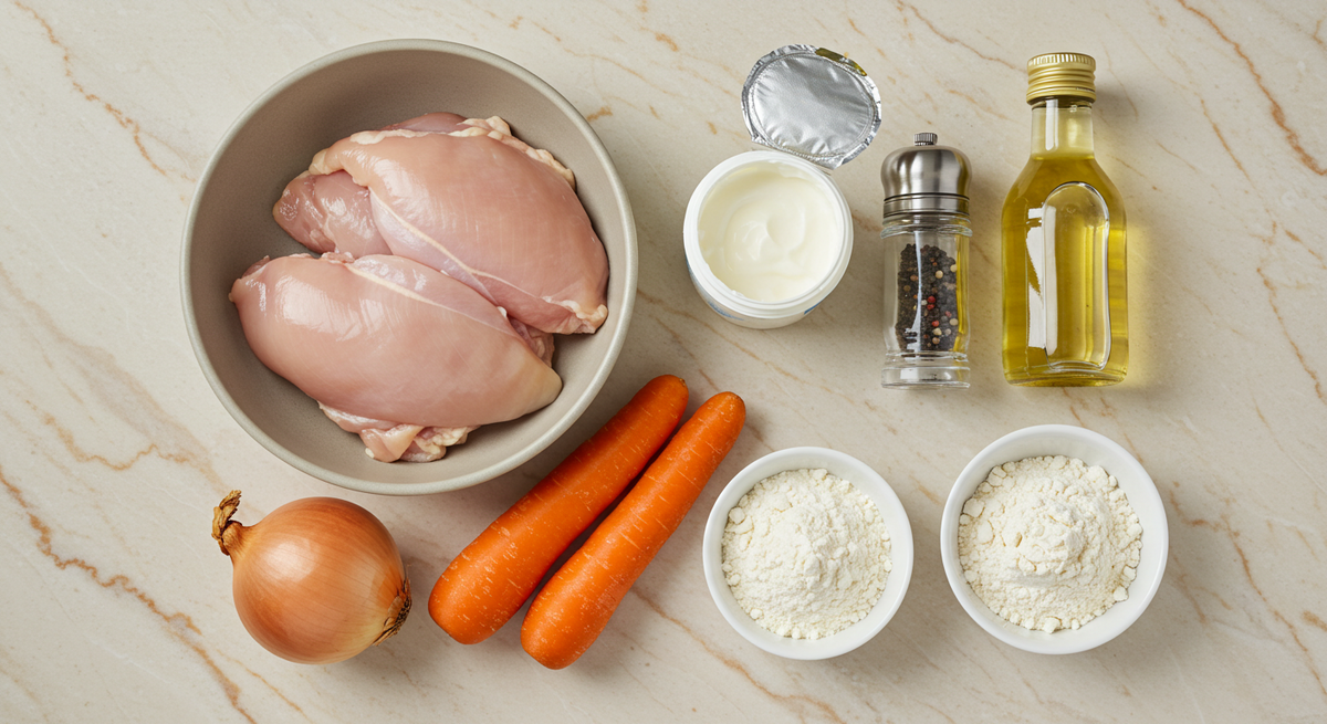 - Сметана — 120 г (жирность 15% или более по вашему желанию). У этой детали важная роль: сметана сделает подливку намного нежнее.