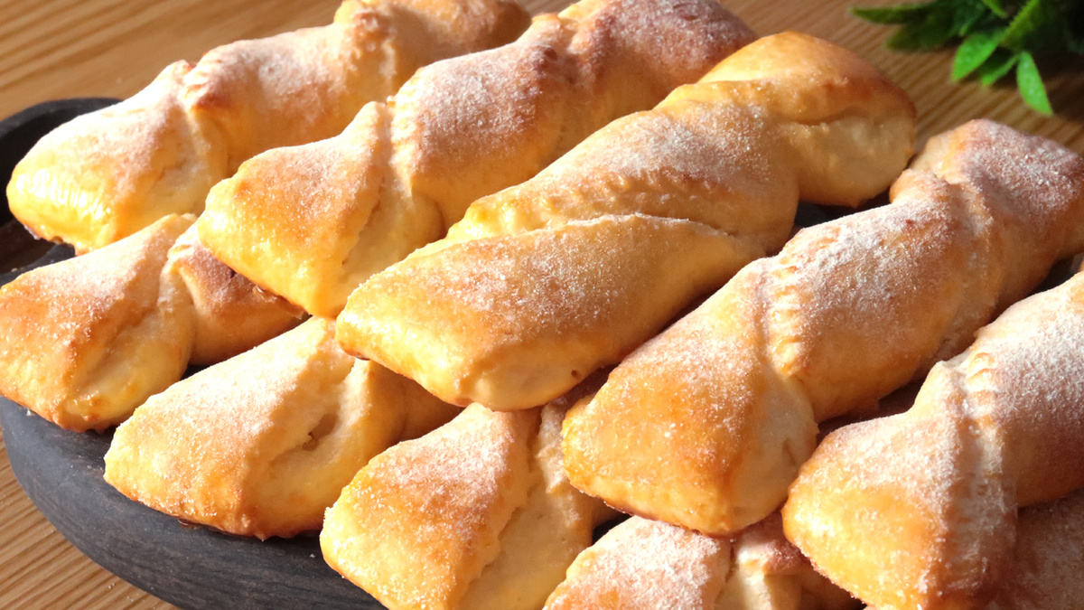 Теперь наступает момент формования печенья — раскатайте охлажденное тесто, добавьте начинку и аккуратно заверните. Для оригинальности можно разрезать на полоски и скрутить их в спирали.
