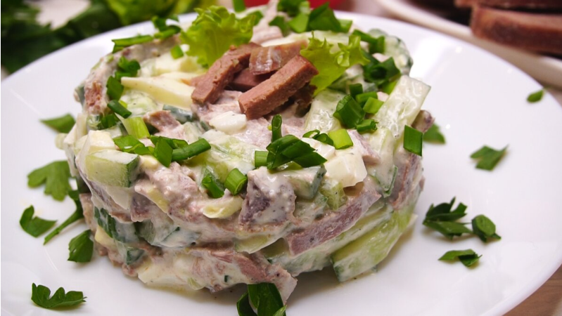 Салат «Объедение» представляет собой удачное сочетание ингредиентов, где свежие огурцы придают блюду особый освежающий вкус. Этот салат идеально подходит как для ежедневного меню, так и для торжественных мероприятий, занимая достойное место на любом празднике.