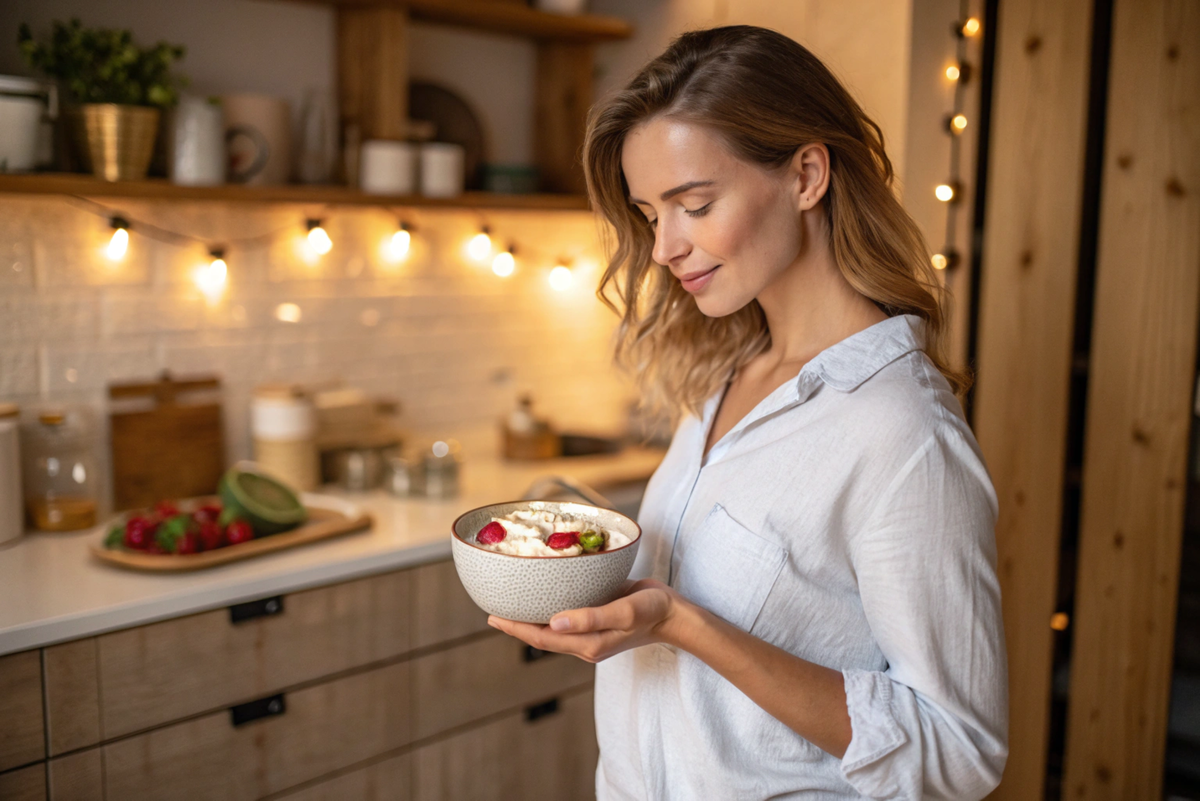Обезжиренный вариант подходит для тех, кто следит за фигурой, а творог с жирностью от 5 до 9% рекомендуется тем, кто хочет поддерживать мышечную массу и здоровье костей.