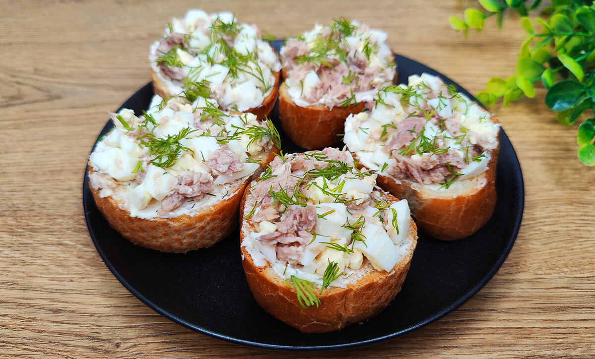 Закусочные бутерброды, имеющие место как на будничном, так и на праздничном столе, представляют собой идеальное сочетание хрустящего багета, деликатного консервированного тунца и мягкости творожного сыра, ароматизированного укропом и чесноком. Это простое блюдо всегда найдет своих поклонников.