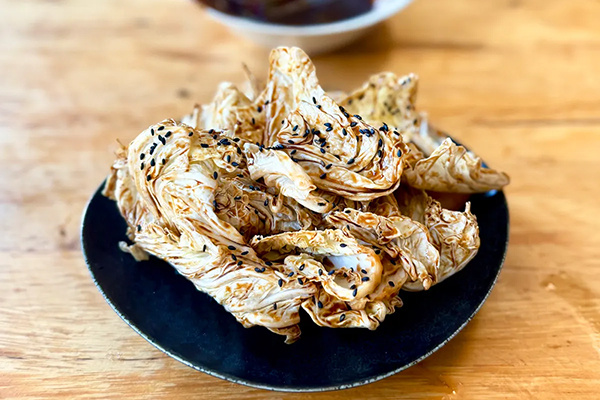 На первый взгляд, это блюдо столь простое, что создается впечатление, будто его приготовили в моменты кулинарного кризиса: свежие листья пекинской капусты и соус из кунжутной пасты, соевого соуса, темного рисового уксуса и немного сахара или меда.