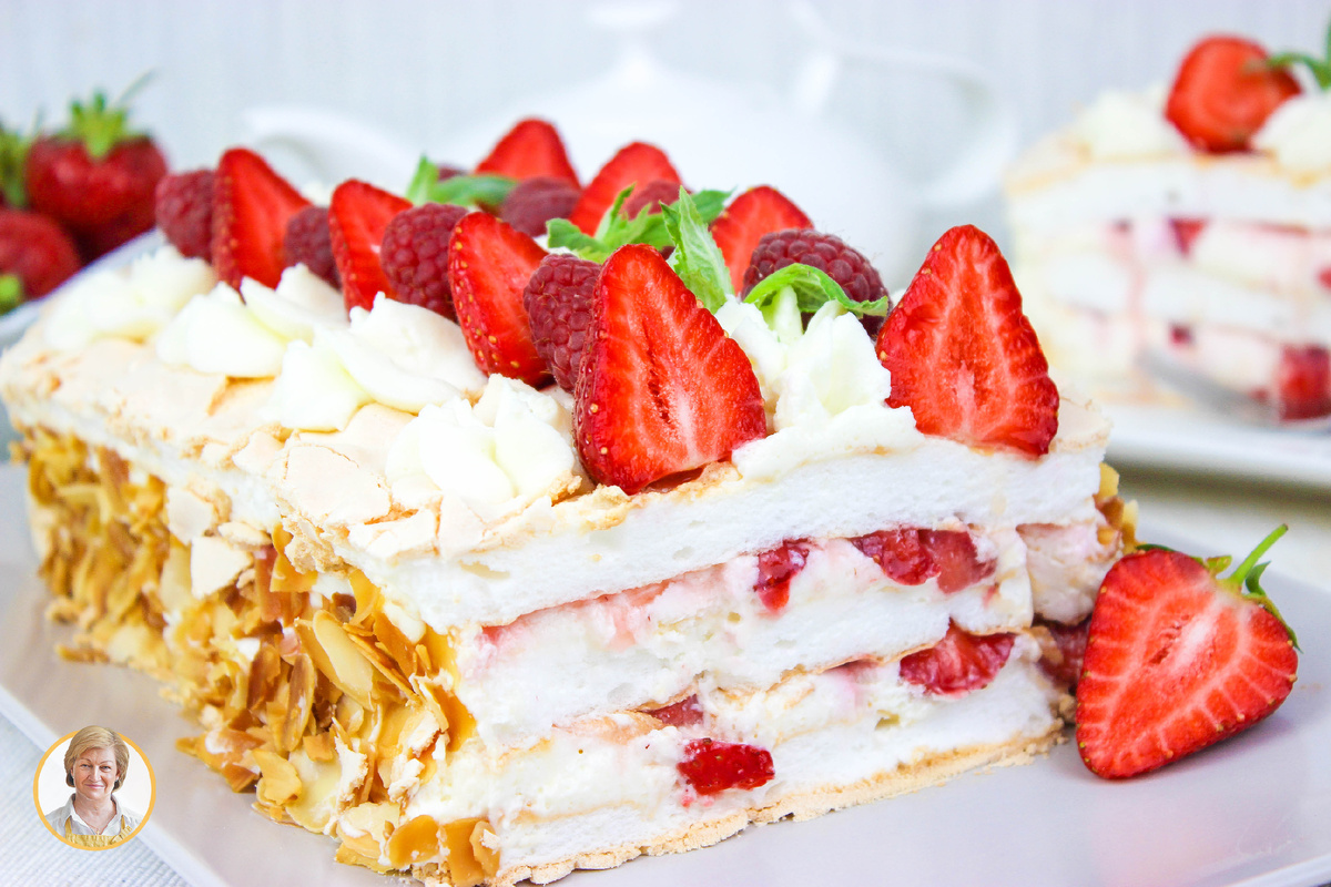 Летний десерт, который обещает удивить своей легкостью и свежестью. Этот торт сочетает нежнейшую меренгу с кремом на основе сливок и творога, пикантную клубнику и хрустящие миндальные лепестки. Постепенно уходит зима, и на смену ей приходит сезон ярких ягод. Этот сладкий шедевр становится фаворитом на летних столах, который легко адаптировать под любые ваши любимые фрукты и ягоды. Идеален для любой компании, и его лёгкость в приготовлении порадует даже самых занятого хозяев.