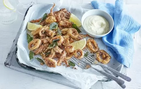 Сервируйте хрустящие кальмары с дольками лимона и ароматным айоли. Это блюдо станет изюминкой вашего ужина и порадует гостей!