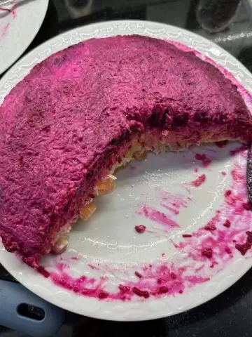 Этот классический салат часто становится центром внимания на праздничном столе. Колоритный с помощью слоями редьки, моркови и свеклы, он радует своим ярким видом и неповторимым вкусом. Вот основные ингредиенты: