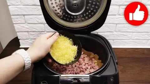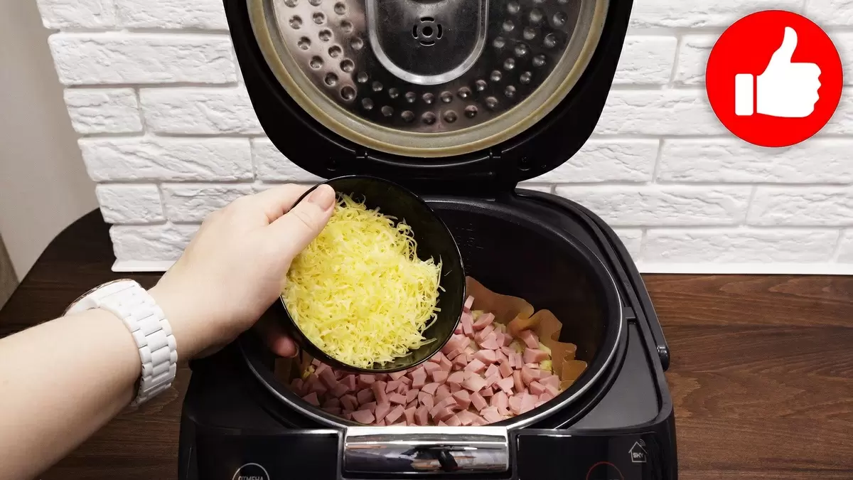 Сверху размещаются предварительно нарезанные сосиски, которые добавят блюду пикантности. Затем посыпьте всё тертым сыром для создания золотистой корочки. Блюдо готовится в режиме «Выпечка» (или «Мультиповар») при температуре 130°C в течение 25 минут. В результате получается сытная и ароматная запеканка, идеально подходящая для утренних трапез.