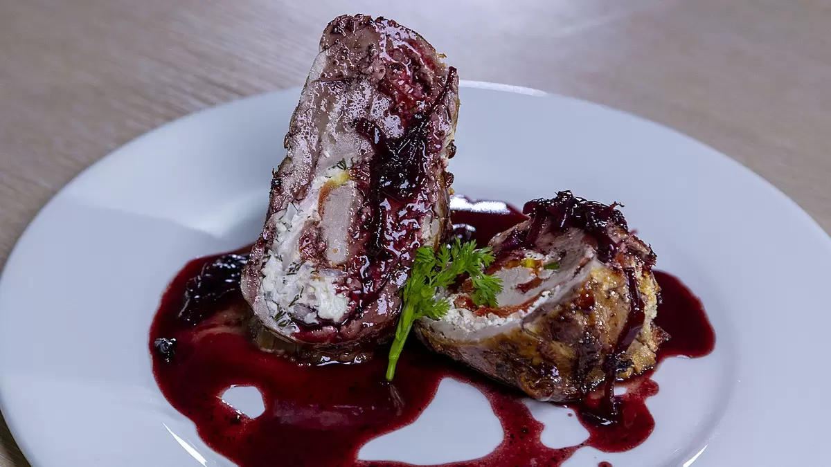 Когда рулет готов, нарежьте его и подавайте к столу вместе с соусом. Это блюдо станет звездой любого застолья и подарит истинное кулинарное наслаждение!