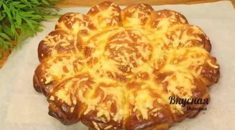 После того как тесто подойдет, его обминают и делят на части. Каждую часть раскатывают, наносят кетчуп или томатный соус, выкладывают начинку и сворачивают в форме рулетиков. Готовые изделия размещают на противне с пергаментом и оставляют на 20 минут, прежде чем смазывать взбитым яйцом и посыпать тертым сыром.
