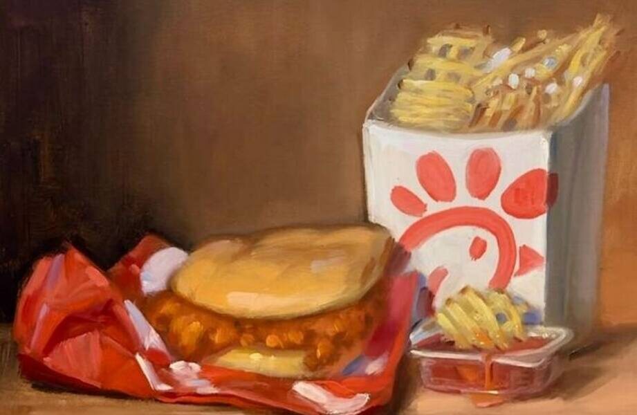 Ноа Верье, талантливый художник, посвятил свои работы изображению еды, и его картины можно смело назвать шедеврами современного искусства. Мягкое освещение, теплые оттенки и спокойные композиции напоминают натюрморты великих голландских мастеров, однако вместо традиционных фруктов и цветов на холстах Верье изображает бургеры, картошку фри и известные логотипы брендов фастфуда. Эти привычные и, казалось бы, обыденные предметы обретает удивительную гармонию и даже возвышенность в его интерпретации.