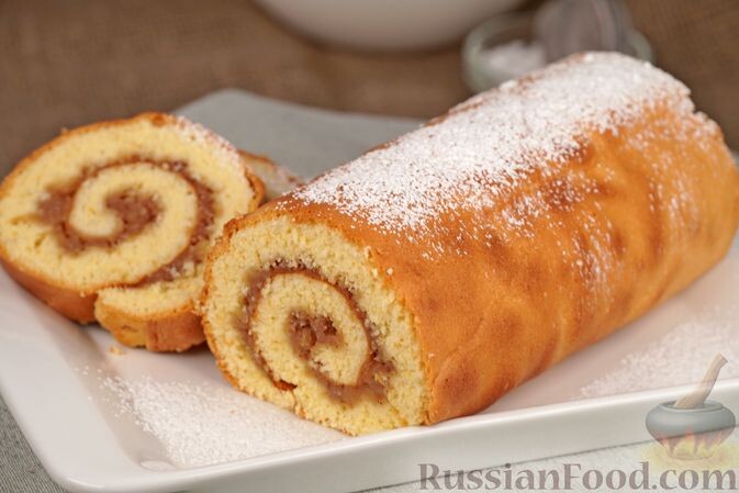 1. Бисквитный рулет с яблоками