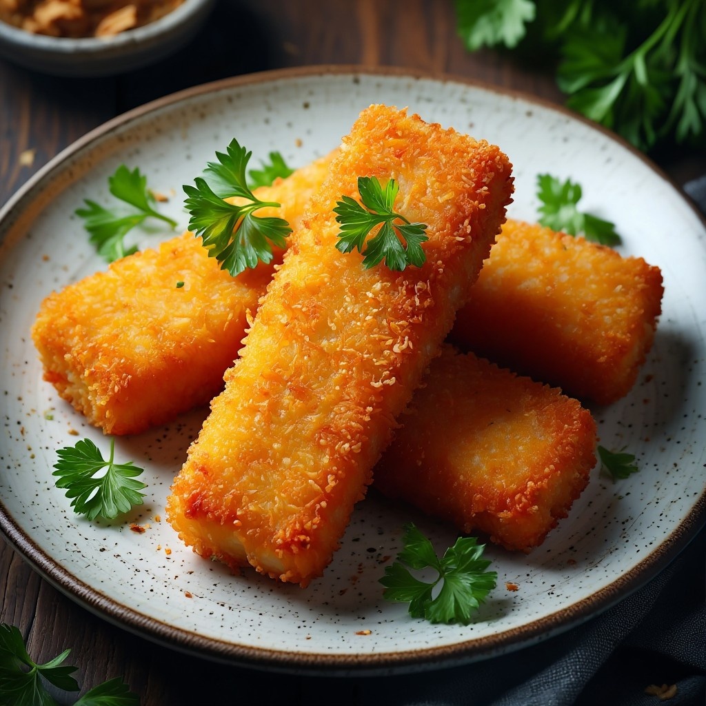 - Обжаривание на сковороде: Обвалять кусочки в муке и яйце, жарить по 3-4 минуты с каждой стороны на среднем огне.