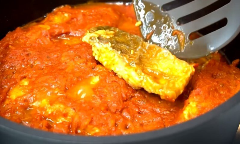 Все подготовленные овощи следует измельчить при помощи блендера до получения однородной массы. Филе горбуши немного подсаливают и обваливают в муке перед обжариванием на растительном масле, что займет всего 40-50 секунд с каждой стороны. В то же время следует приготовить маринад, который включает в себя ранее приготовленную массу с помидорами, перцем и специями. После закипания маринада, его нужно выключить.