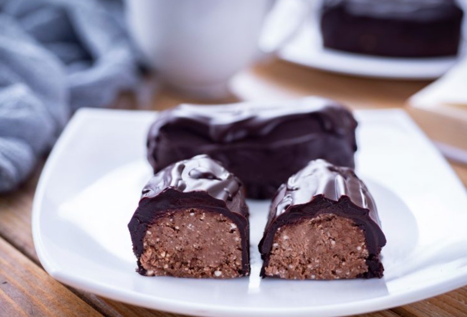 3. Когда заготовки достаточно затвердеют, перейдите к приготовлению глазури. Растопите шоколад с маслом на водяной бане, добившись гладкой консистенции. Достаньте сырки из морозильника, обмажьте их шоколадной глазурью и вновь положите в морозильник, на этот раз на час.