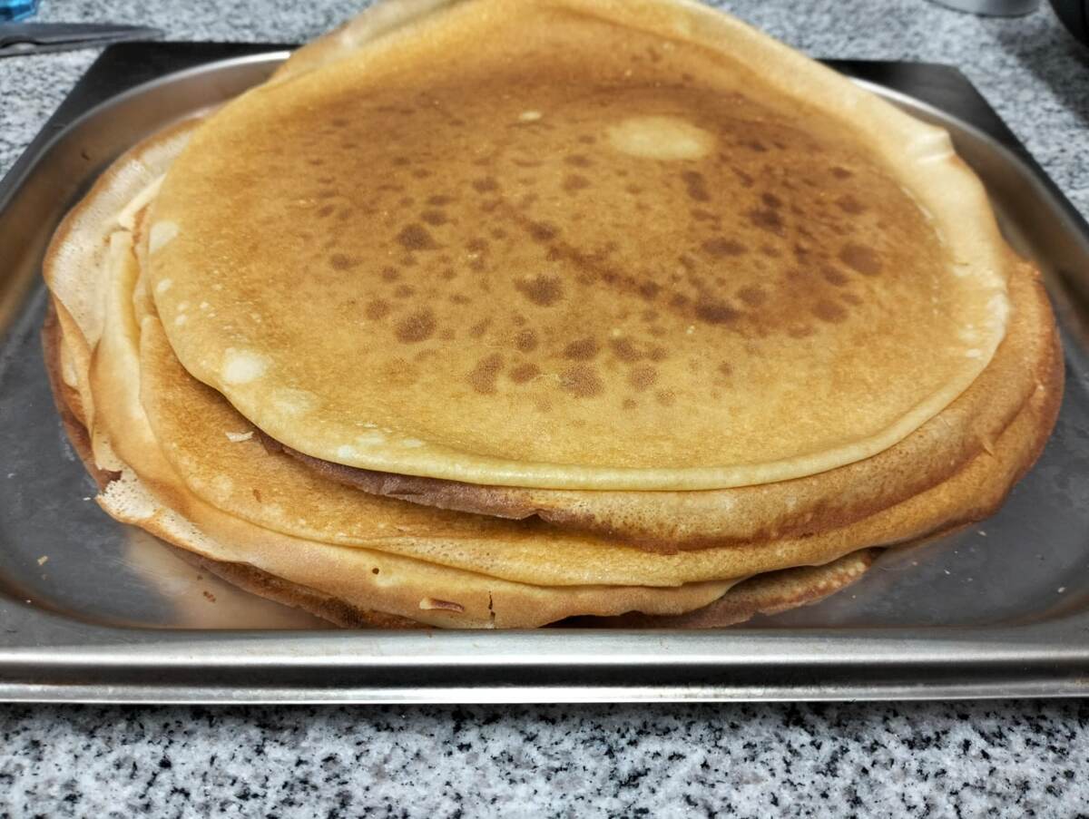 Неоднократно на огромной кухне жарили блинчики, и объемы порой доходили до нескольких литров молока за раз. Завершив одну партию, сразу же начинали готовить следующую — спрос был настолько велик, что к вечеру горка блинов могла значительно уменьшиться. Однако этот рецепт всегда обеспечивал превосходный результат — блинчики выходили тонкими, менее жирными и легко складывались с любой начинкой.
