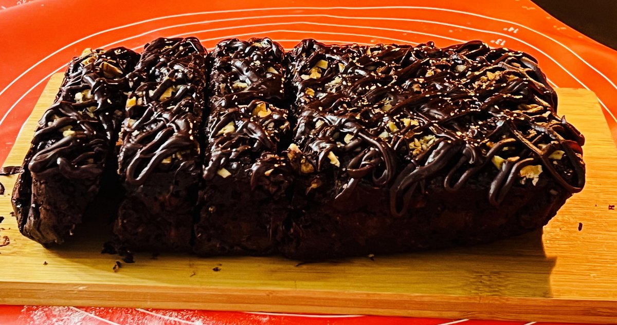 - В отдельной чаше размять два банана и добавить к ним два яйца, 4 столовые ложки какао и чайную ложку разрыхлителя. Хорошо перемешать.