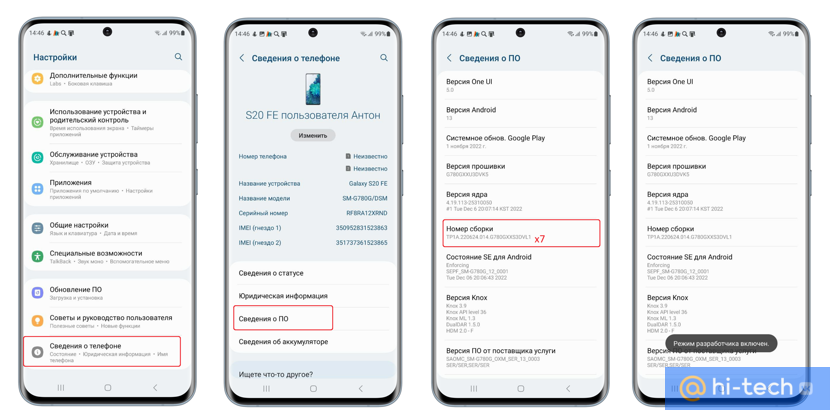 - Выберите Номер сборки и нажимайте на него 7 раз подряд. Каждое нажатие будет информировать о количестве оставшихся шагов.