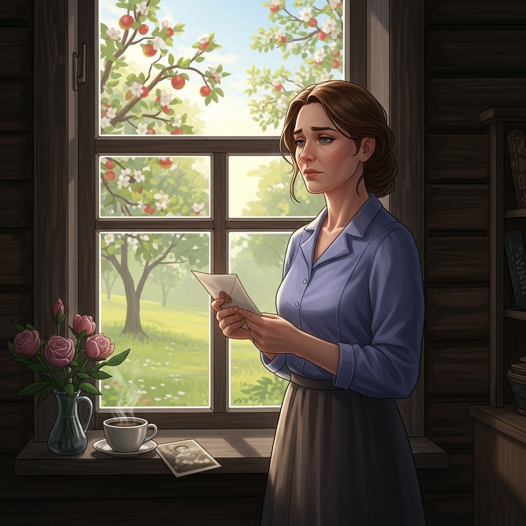 Андрей стал навещать её всё чаще. Он починил полку и принёс яблоки, в дом вернулось движение и уют. Соседи заметили изменения и шептались: «Похоже, Мария ожила». Но вместе с теплом пришёл и страх: каждый вечер, глядя на мужа на фотографии, она испытывала чувство вины.