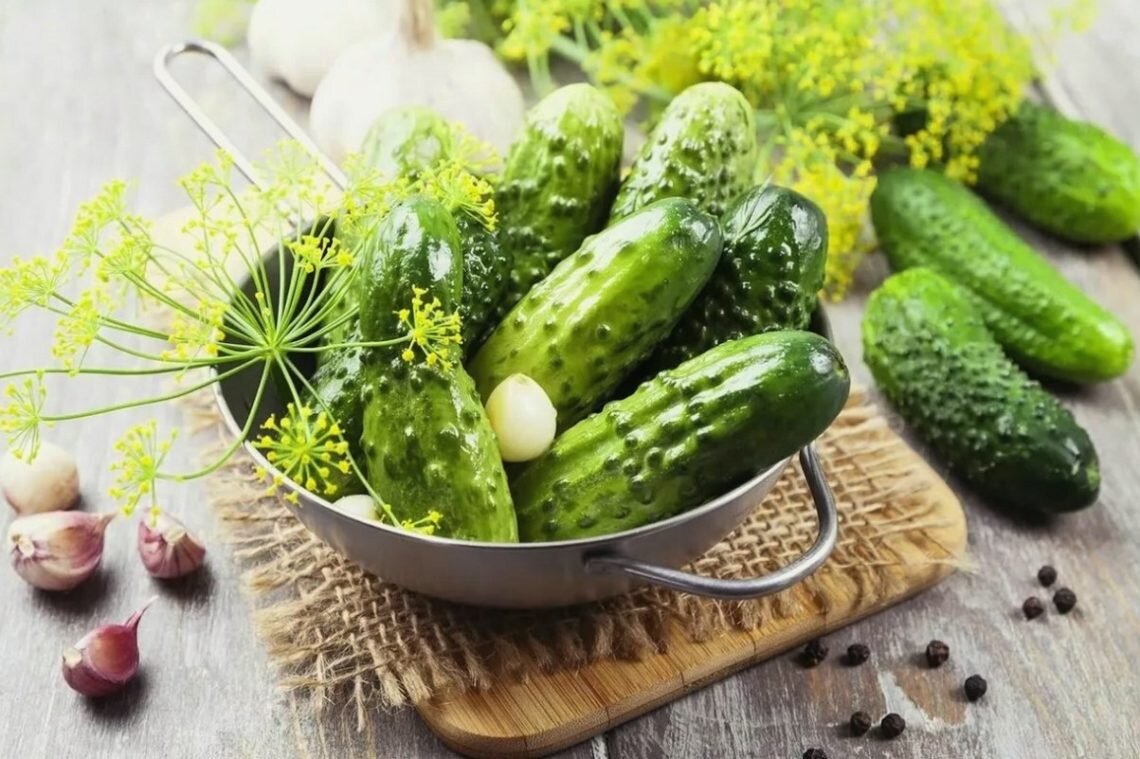 - 5 кг свежих огурцов;