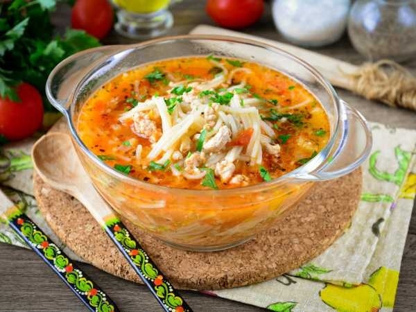 Наслаждайтесь насыщенным супом с фаршем и вермишелью