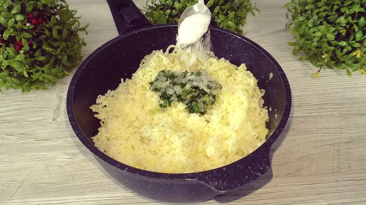 Сначала следует приготовить начинку. Отварить картофель, не добавляя соль в процессе варки, затем размять его в пюре. Лук обжарить на растительном масле до золотистого цвета и добавить к картофелю вместе с солью и перцем по вкусу. При необходимости можно добавить столовые ложки картофельного отвара для улучшения консистенции начинки.