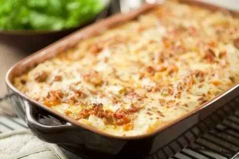 Эта запеканка предлагает низкокалорийный, но питательный прием пищи: калорийность — 124.2 Ккал, белки — 5 г, жиры — 6.7 г, углеводы — 11.2 г.