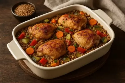Каждый из нас сталкивается с моментами, когда готовить хочется не сильно, но накормить семью любимым блюдом необходимо. Решение в таком случае — запеченная гречка с куриными бёдрышками и овощами. Это блюдо максимально простое в приготовлении, при этом его аромат не оставит равнодушным никого, даже соседей.
