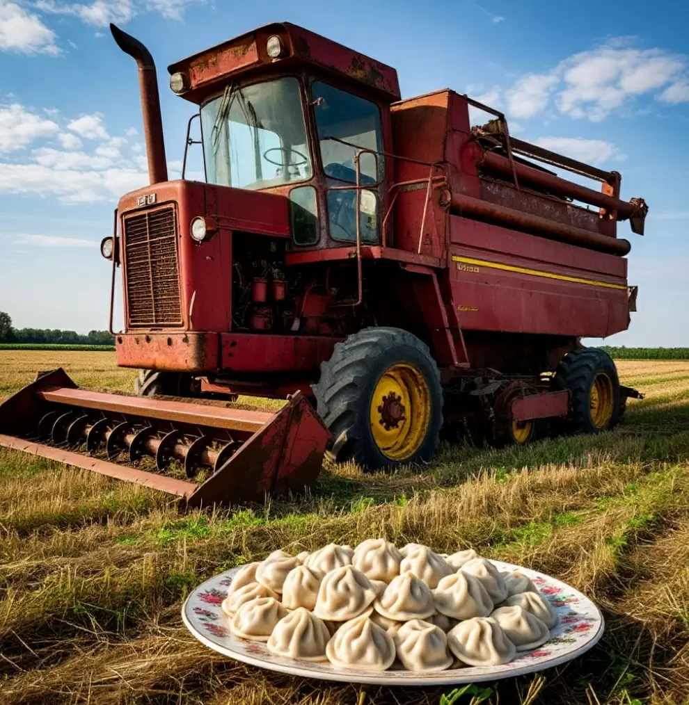 В сонном и солнечном утром, дядя Коля — комбайнёр с тридцатилетним стажем и крепким здоровьем, решил, что плотный завтрак не помешает перед долгим рабочим днем. Его жена, предусмотрительно надевшая на варку целый таз пельменей, была готова к любому повороту событий.