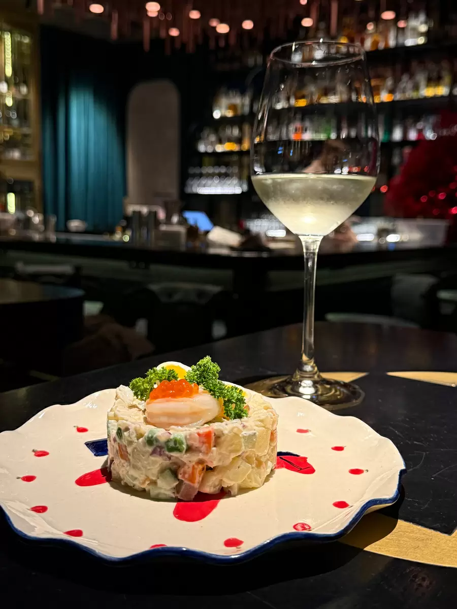 Каждая позиция подается на тарелках, созданных совместно с Volna Ceramics, где годовая символика — красный конь — напоминает о ходе времени и тепле семейной утвари. Тарелки можно взять в баре как подарок себе или близким.