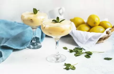 Первым делом, для лимонного курда, венчиком смешайте два яйца с сахаром, соком и натертой цедрой одного лимона. Этот процесс нужно осуществлять осторожно, чтобы добиться однородной массы.Поместите смесь на водяную баню и, постоянно помешивая, готовьте до загустения в течение 5 минут. Как только ваш лимонный курд готов, накройте его пленкой «в контакт» и дайте полностью остыть в холодильнике.Пока курд охлаждается, взбейте желтки с сахарной пудрой до получения легкой и воздушной текстуры. Введите маскарпоне и продолжайте взбивать ещё 3–4 минуты. Затем осторожно добавьте остывший курд и взбивайте до однородности.Для приготовления лимонного сиропа доведите до кипения 250 мл воды с оставшимся сахаром, соком и цедрой половины лимона. Проварите смесь 3 минуты, после чего охладите.Формируйте порции десерта, чередуя слои пропитанного сиропом савоярди и крема. Уберите готовое лакомство в холодильник на 1–2 часа для пропитывания. Подавайте с освежающей мятой.Этот тирамису с лимонным курдом точно удивит вас и ваших гостей. Приятного аппетита!