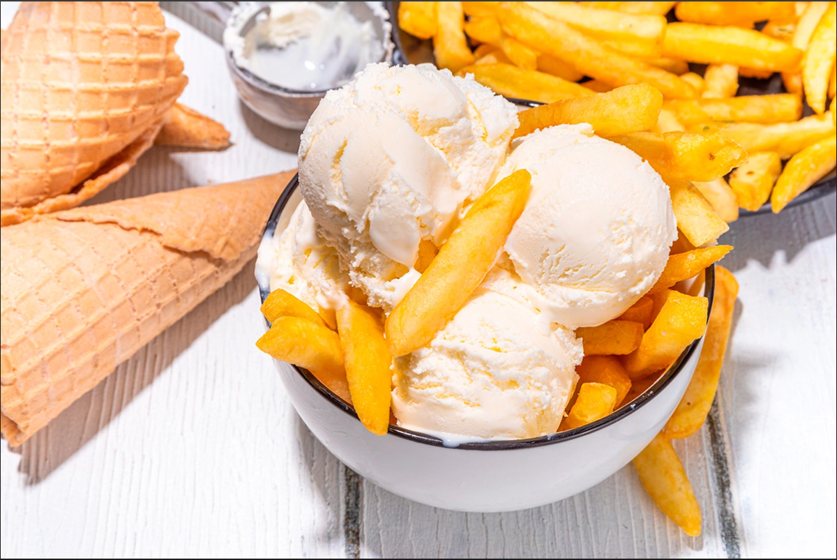 Необычное сочетание для гурманов: картофель фри с шоколадом и мороженым