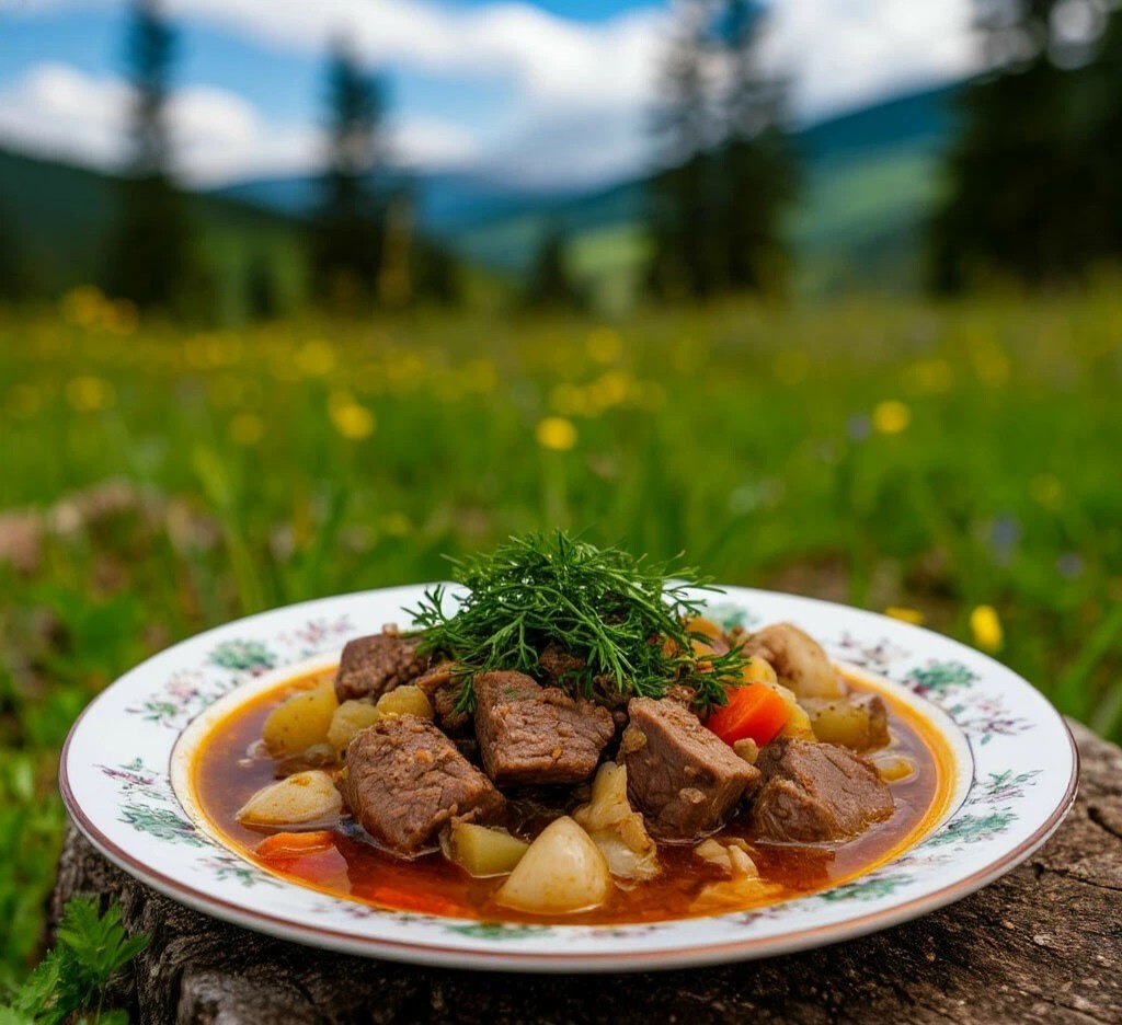 Шулюм традиционно подают горячим с лепешкой, свежим хлебом и острым соусом. А для особого аромата в костер можно бросить веточку можжевельника. Следуйте этим простым советам, и ваш шулюм обязательно станет хитом на любом застолье!